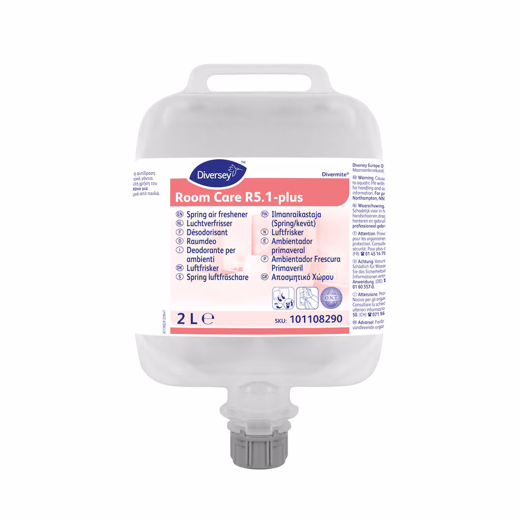 Diversey Room Care R5.1-plus 2x2L W207 is a concentrated non-aerosol spray air freshener designed to deliver a lasting pink blossom fragrance. Ideal for maintaining a fresh environment in both public and private spaces, this product is perfect for businesses in Tanzania and Zanzibar. Its high concentration ensures cost-effective usage, allowing for extended periods between refills.